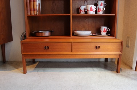 棚とキャビネットは別々でも使える少し珍しいデザインの本棚です。