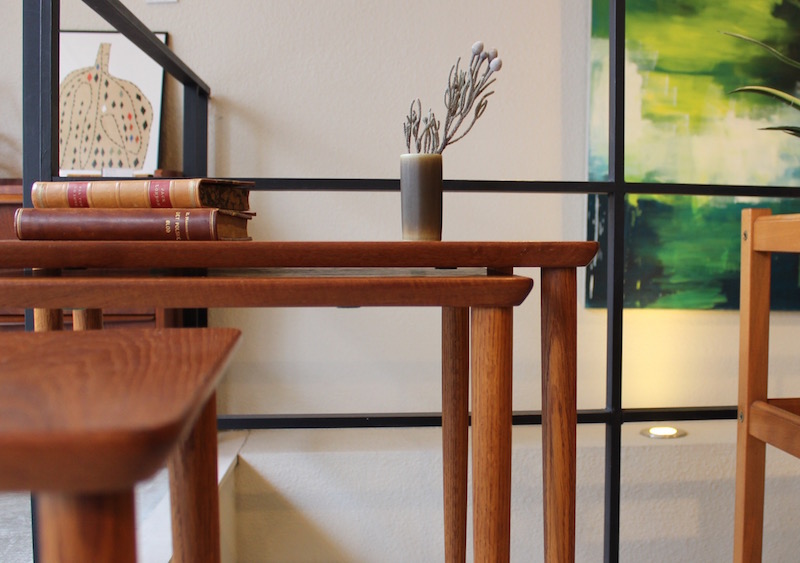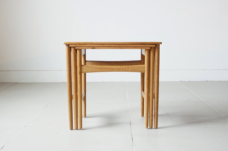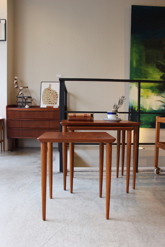 前回のブログでも一瞬登場していましたがスッキリとしたデザインのネストテーブルです。