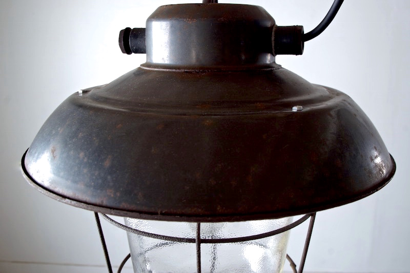 周りはヴィンテージ感漂うエナメルのシェードとアイアンのカバー。