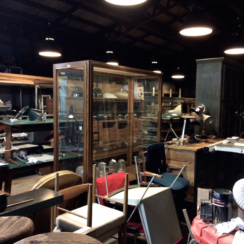 総数1000アイテム程度のインダストリアル、アンティーク、モダンのヴィンテージ家具やランプは圧巻です。