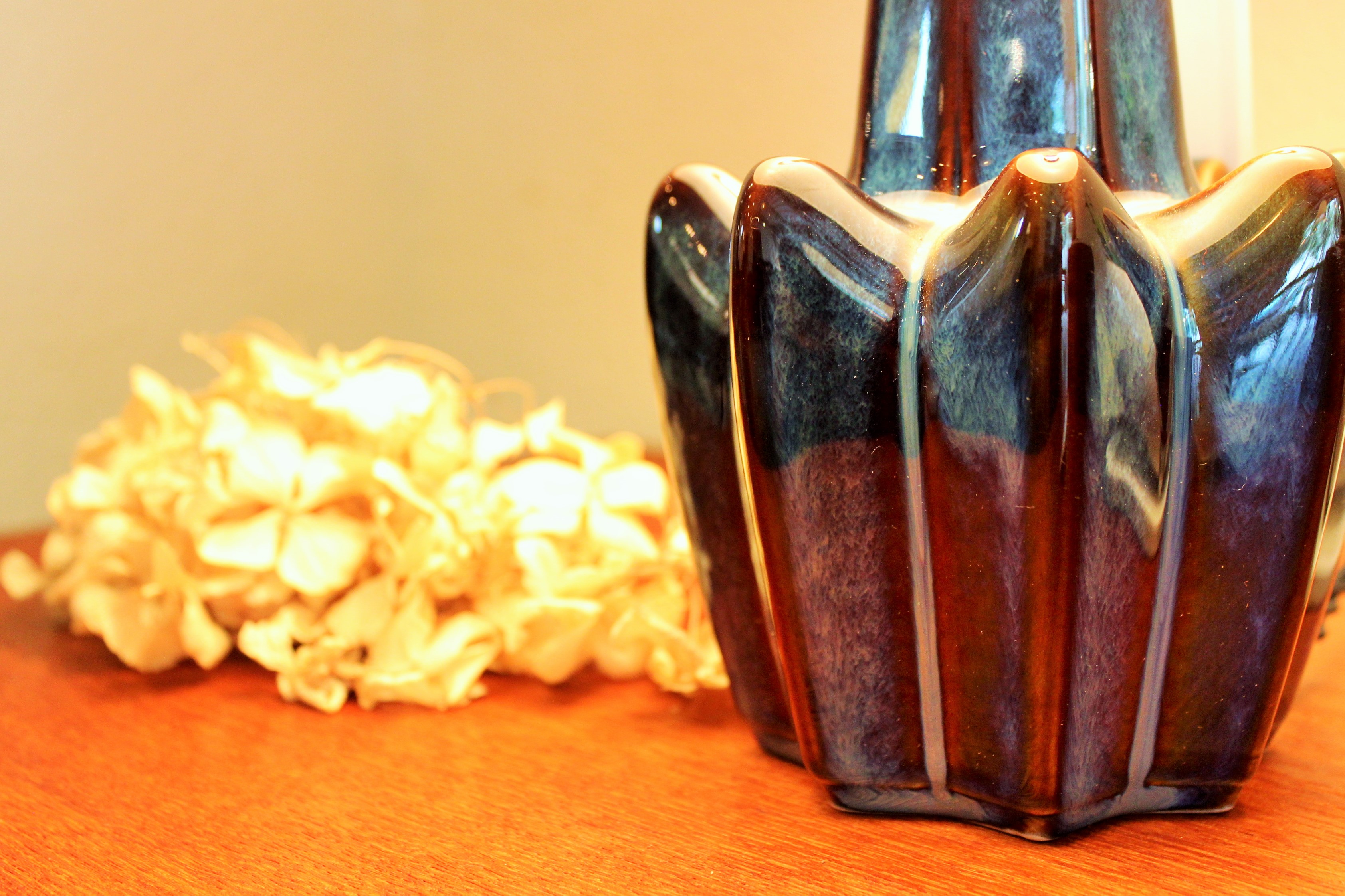 こちらはかぼちゃのような可愛らしいフォルムに茶色と濃いブルーの落ち着いたお色。