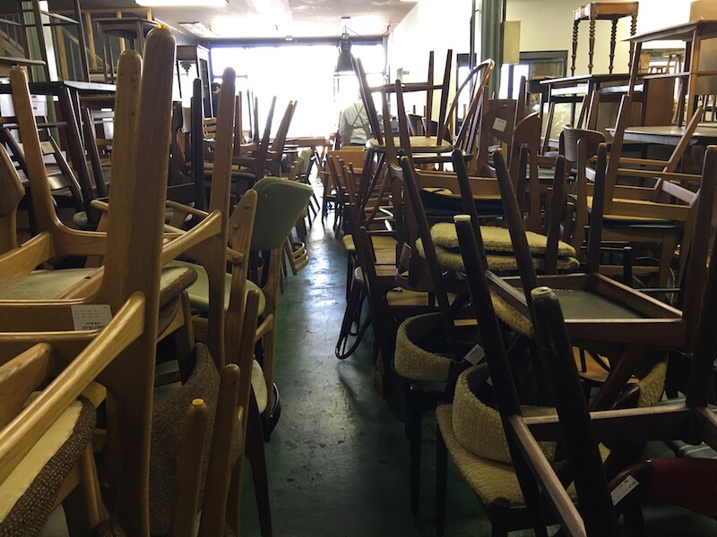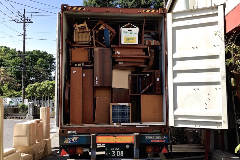 ウェアハウスに到着するヴィンテージ家具コンテナの入荷頻度は基本的に3ヶ月に1度。