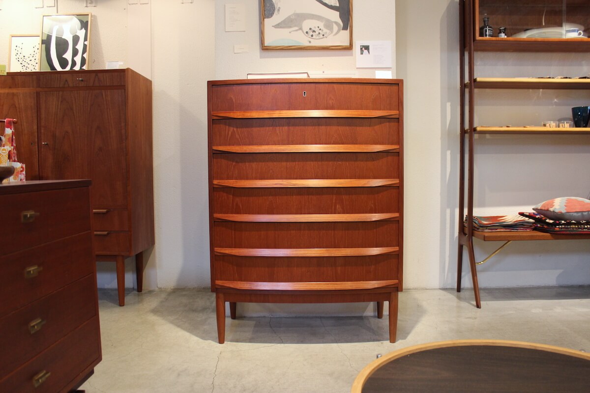 最後にご紹介するのは、ほんのり湾曲したデザインのチェストです