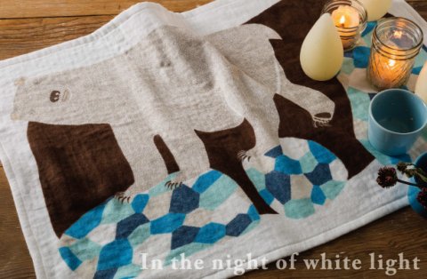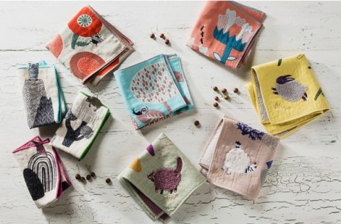 森田さんのデザインで感心するのは柄や色使いだけでなく、ガーゼ、タオル、刺繍のテクスチャーの違いも上手く使ってデザインに落とし込んでいるところがあります。
