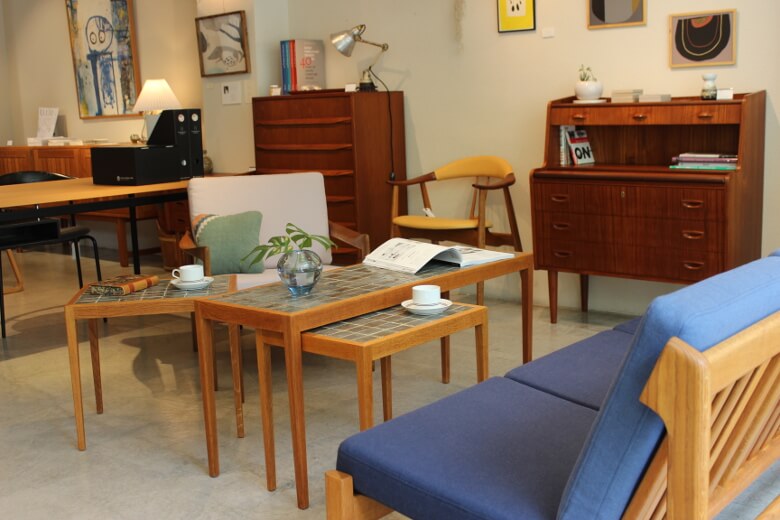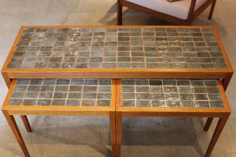 まず最初はこちら、イルムスのタイルトップのネストテーブルです。