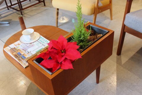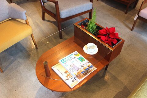 プランターとコーヒーテーブルを一緒にしたのは斬新です。