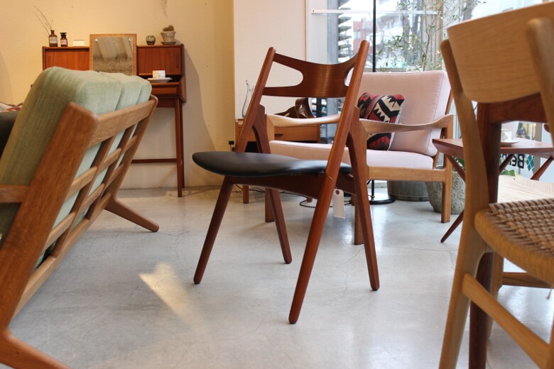 ハンスウェグナーCH29のチェア。座面は黒のレザー張りです。