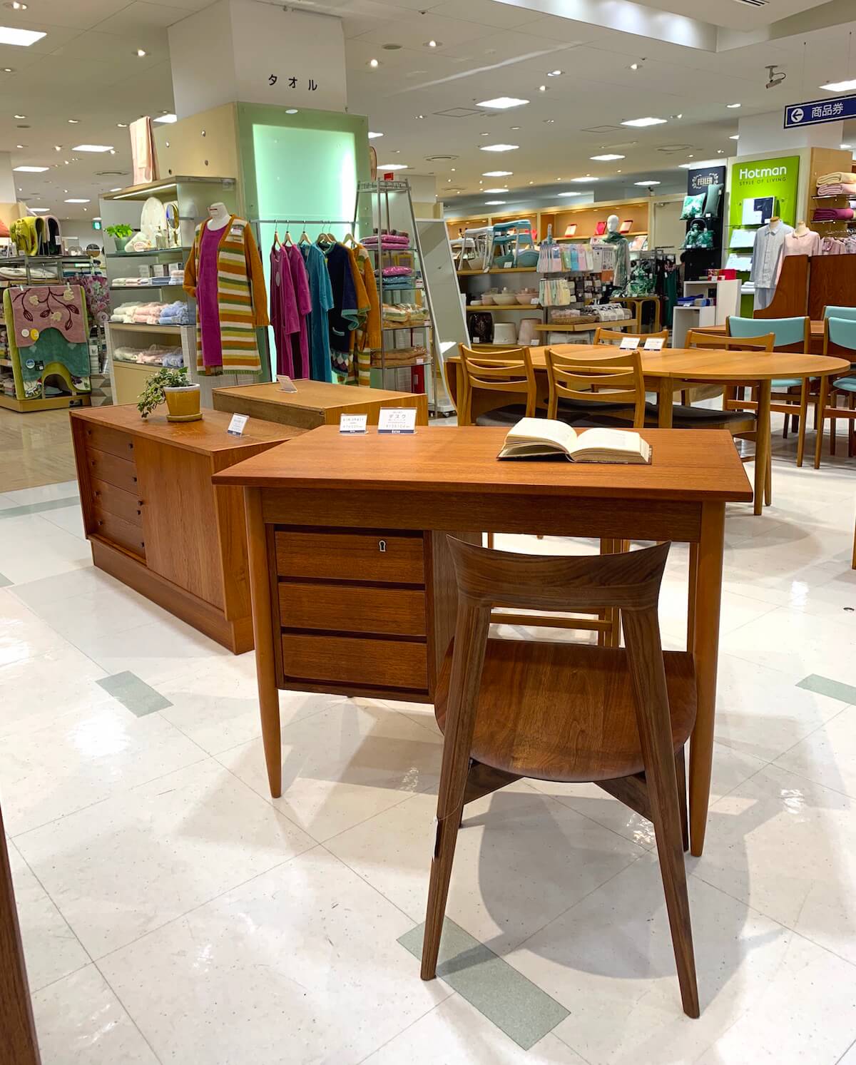 デスクも展示してありますよ。コンパクトで鍵付きの引き出しも付いてます。