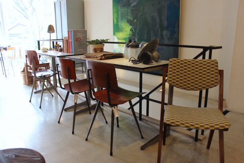 フリソ・クラマーと、ウィム・リートフェルトが共同でデザインしたスクールデスクもございます。脚のデザインがポイントになっていて、無駄がないデザインでカッコ良いです◎