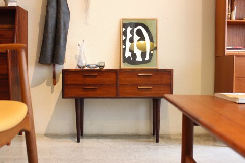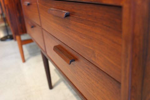 カイクリスチャンセンの稀少なローズウッドを使用したチェストです。重厚感と高級感があって美しいです。脚の部分も、ローズウッドでできているんですよ!