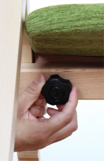 座面、足置き台は工具を使わず手で簡単に調整可能です。