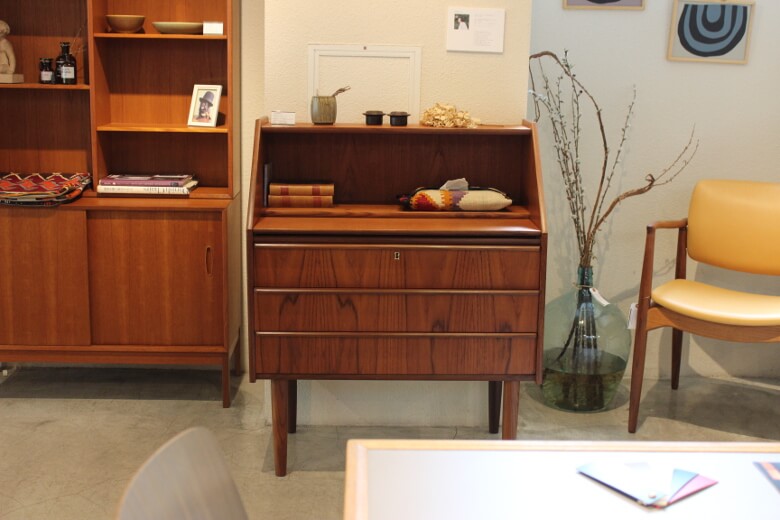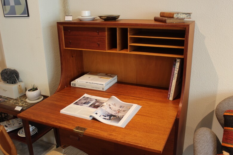 無駄のないデザインと特にサイズ感が絶妙で、作業台の高さから収納スペースのサイズ感まで、きっと使用する人のことを考えて苦労して作られたビューロなんだなと実感します。
