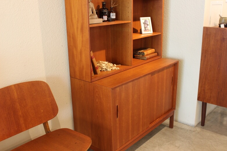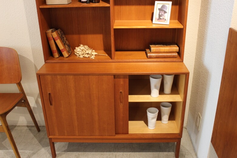 上の本棚と下のキャビネットは後ろで固定されているのですが、単体として分けてご使用することもできますので、さまざまな雰囲気のインテリアをお楽しみいただけて使い勝手が良い本棚ですよ◎