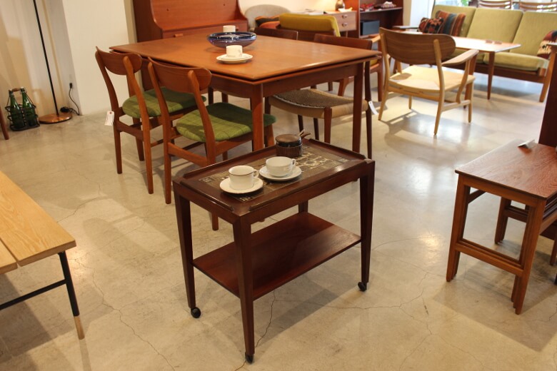 キャスター付きで容易に動かすことができますので、ソファ横にサイドテーブルとしてご使用もできますし、タイルのデザインも素敵なのでディスプレイとしてお使いいただいても良いですね!