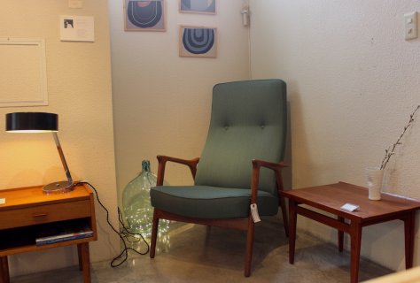 今回はデンマーク製のグリーンの生地で張り替えました。