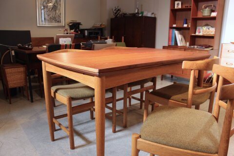 フレームと脚はオーク材なので全体的に明るい印象のテーブルです。