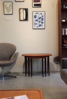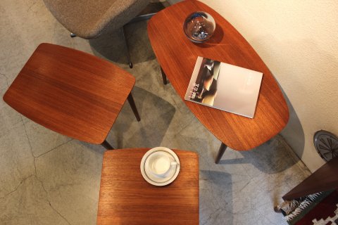 一番大きなテーブルは小判形で3つとも形が違ってます。