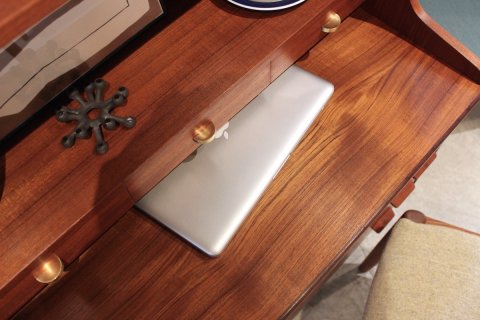 このビューロのもう一つの特徴が天板と小引き出しの間にスペースがある事です。