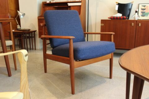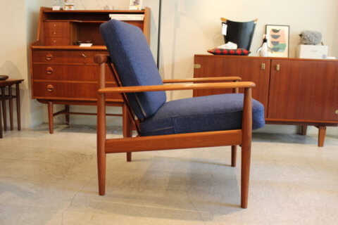 このイージーチェアのデザイナーは不明なのですが、France & Sønといえばデンマークの黄金期に活躍したデザイナー、フィン・ユール、グレーテ・ヤルク、オーレ・ヴァンシャーなど名だたる面々の作品を多く手掛けているメーカーです。