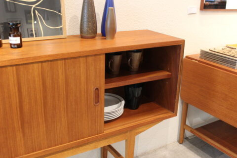 こちらのサイドボード、横幅はありますが脚が抜けているのと奥行がないので圧迫感がなく、お部屋が広く感じられますよ!