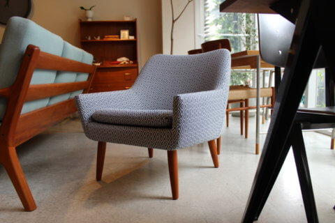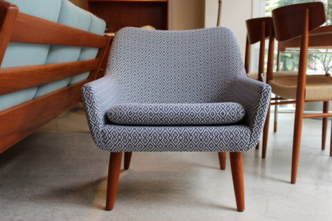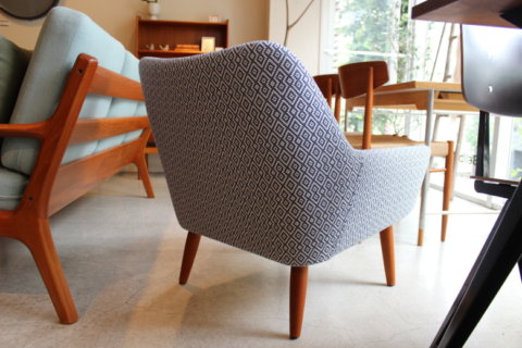 肘掛から背もたれにかけての曲線が美しく、どの角度から見ても角が丸くて柔らかい雰囲気を出してくれています。