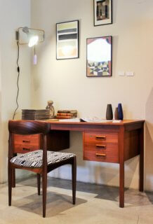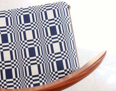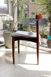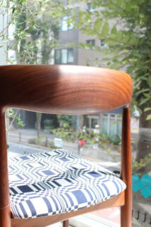 経年変化したウォルナットに現代的な北欧テキスタイルのエッセンスがマッチして、特別な一脚になりました。