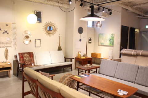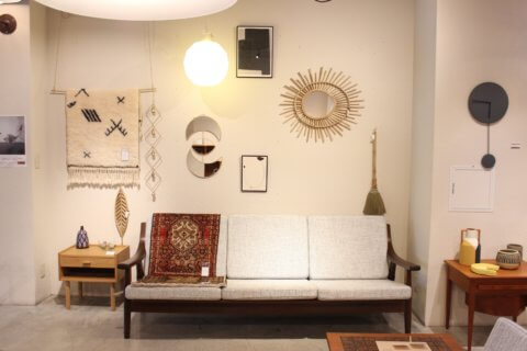 小さいお店ですが、スペースが許す限り選りすぐりのリビングアイテムをギュッと詰め込みました。