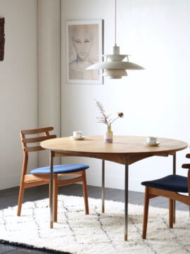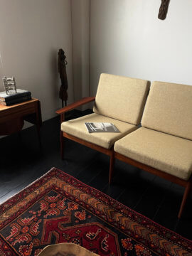 G.E.Mさんが現地で直接見て、一枚一枚に込められた作り手の思いを感じて選んだこだわりのラグは北欧ヴィンテージ家具とも相性が良く、