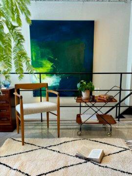 テーパーがかった脚部と直線的な背もたれのバランスが素敵ですね💕