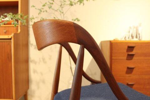 背もたれからアームに続く接合部の滑らかな仕上がりはデンマークの家具職人の技術力の高さが伺えます。脚部も接合部は細く、中心部は太くと彫刻的です。