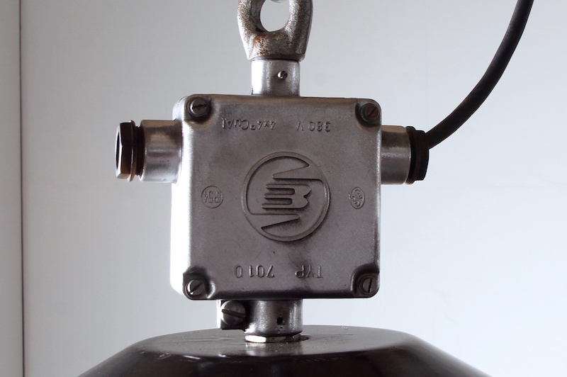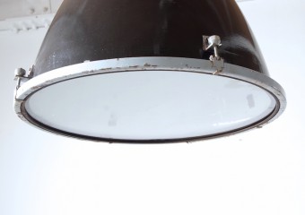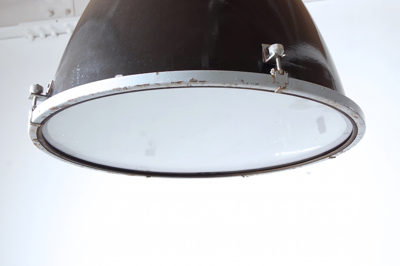 1950年代~1960年代ヨーロッパの工場や炭鉱、発電所、公共施設等の建物で実際に使用されていたビンテージインダストリアルランプシェード。ガラスカバーの付いたタイプでカバーとシェードを繋ぐ金具も雰囲気が有り、その独特なフォルムと存在感は店舗什器などインテリアのアクセントとしておすすめです。