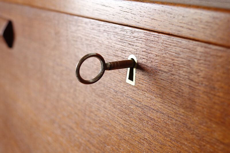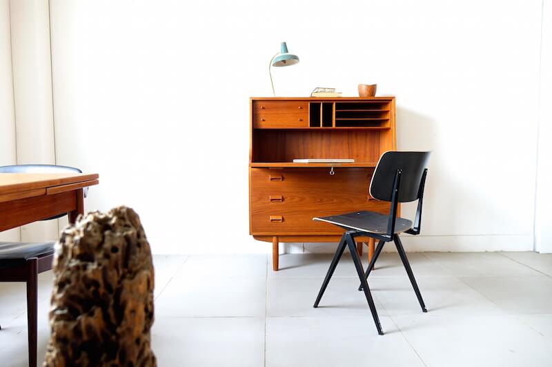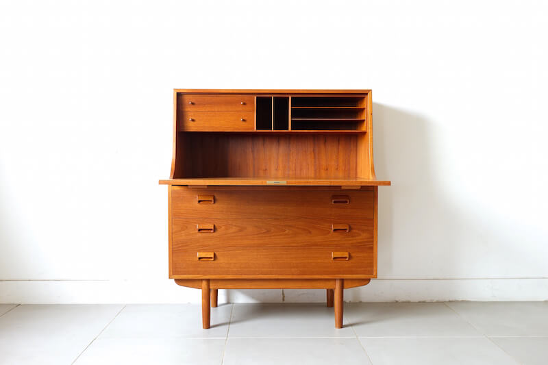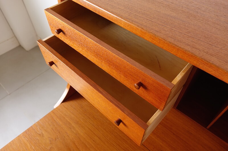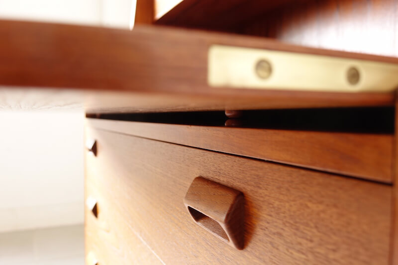 Borge Mogensen(ボーエ モーエンセン)デザインによるSOBORG MOBLER社製ヴィンテージライティングビューロー。シンプルで温かみのあるデザインはモーエンセンならでは。天板は鍵で固定が出来、天板を手前に倒すだけで簡単に使うことが出来ます。小さな2段の引き出しやA4ファイルも収まる複数の仕切り、大型ながらも実用的なサイズ感で大変人気の高い逸品です。