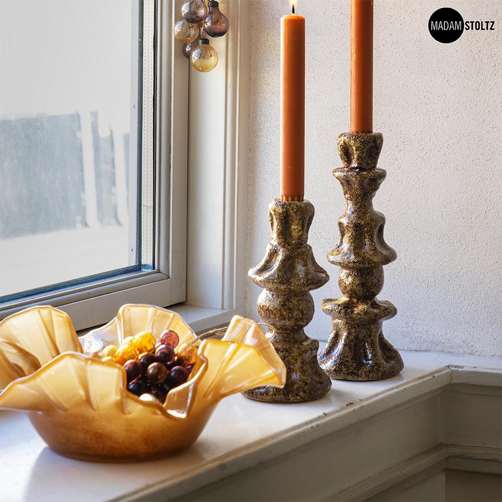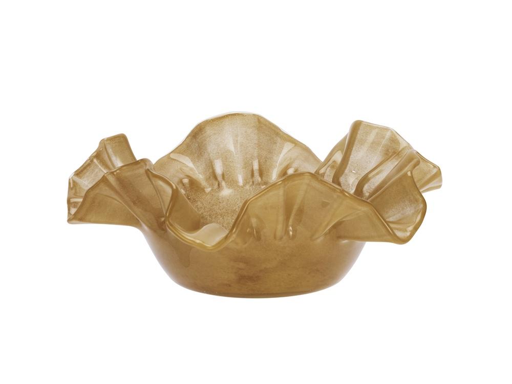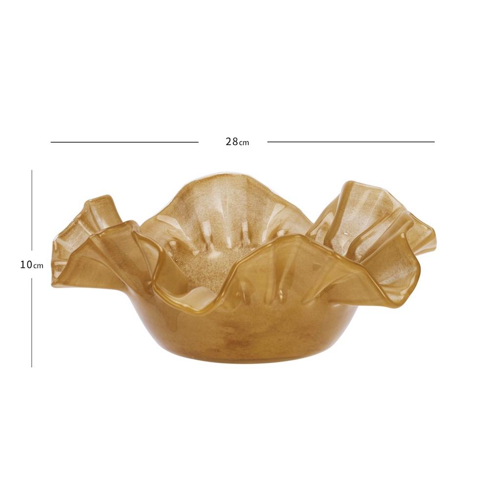キャラメルカラーの透け感と、ゆったり波打つフリルの縁が印象的なガラスボウル。