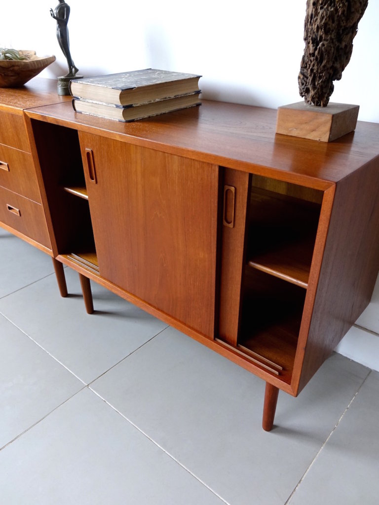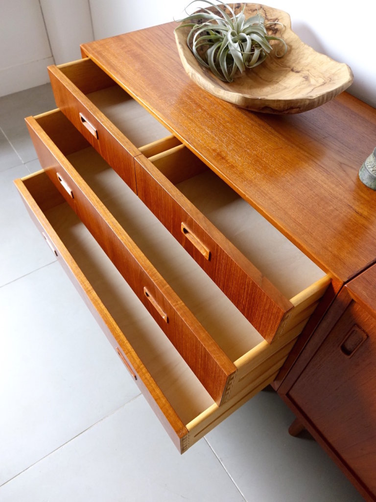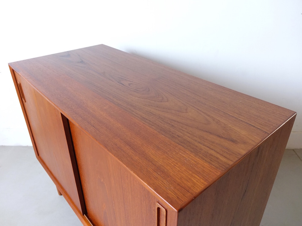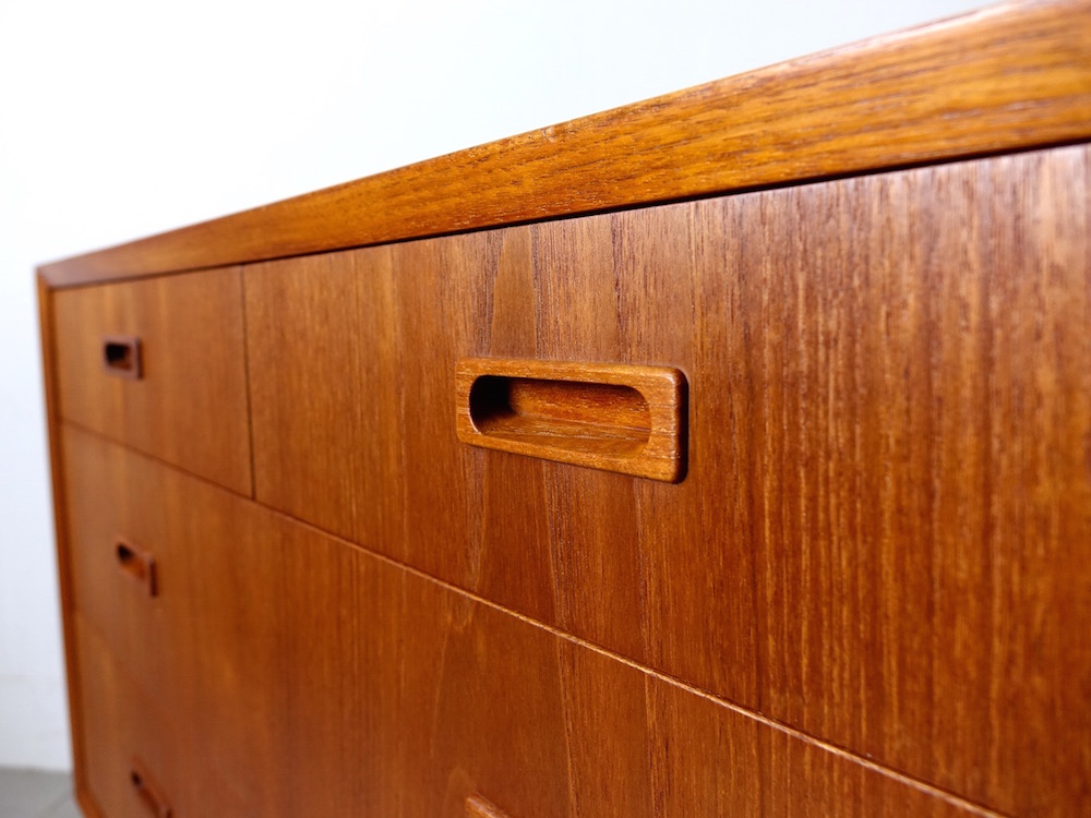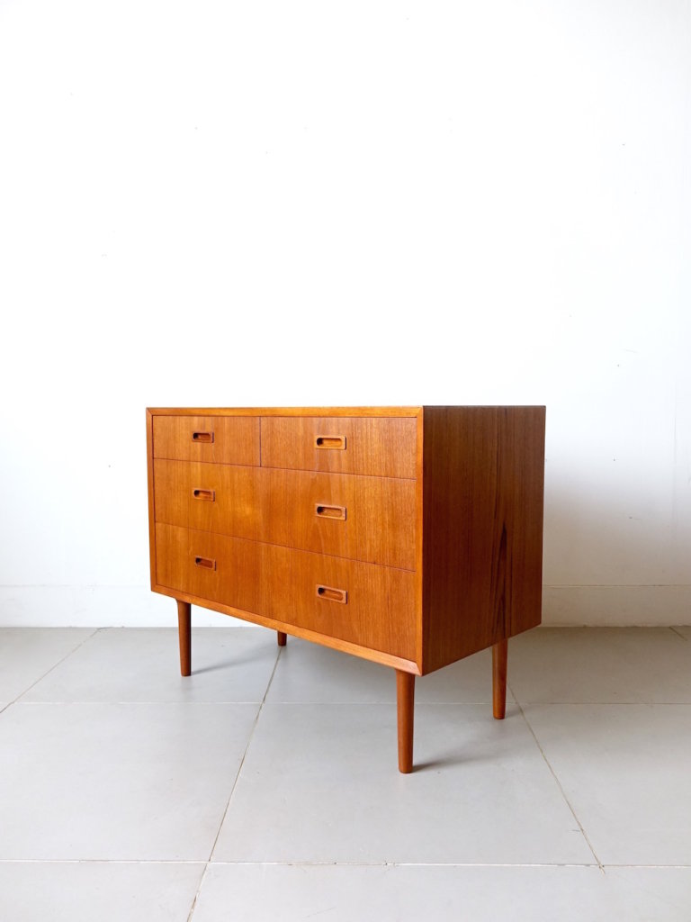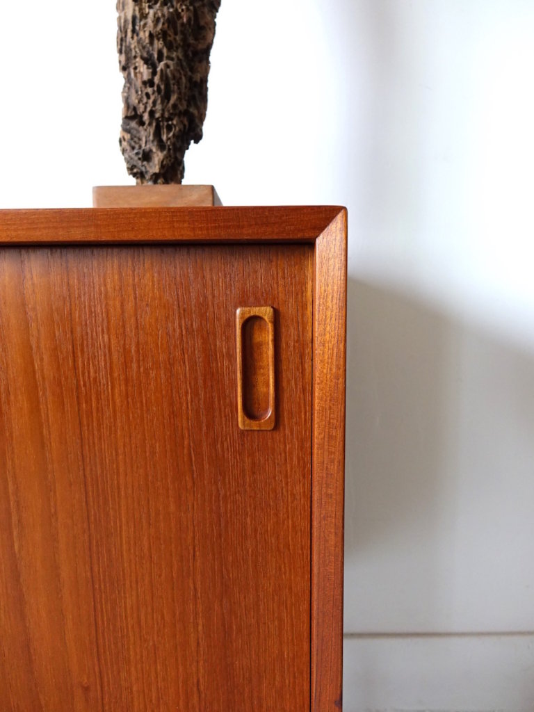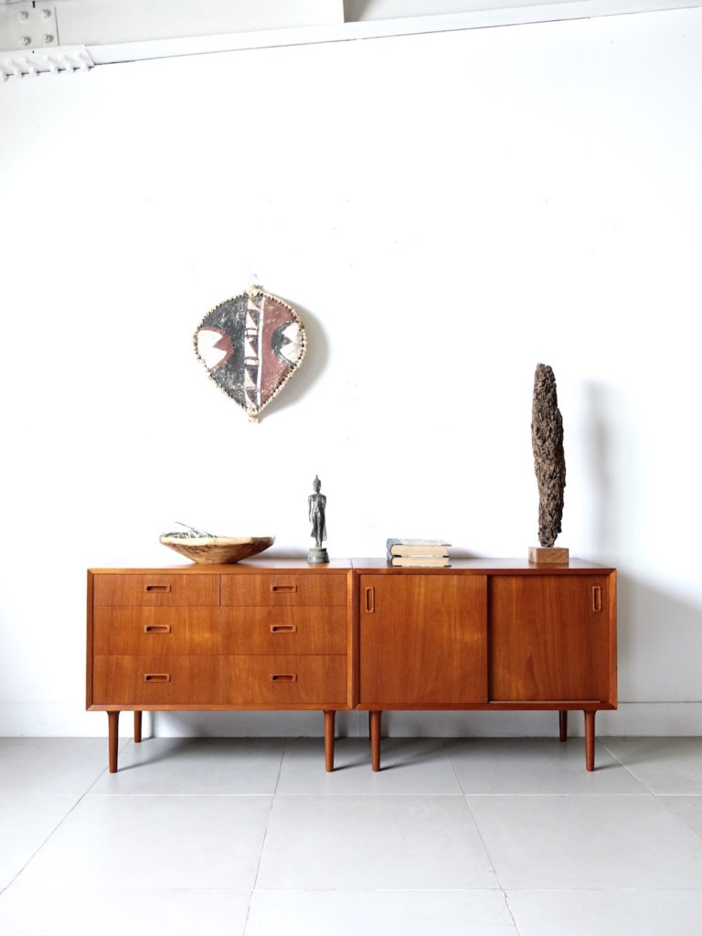 60年代デンマークで上質なストレージ類を多く制作していたLYBY Mobler製のヴィンテージチェストと引き戸キャビネット。W 90 D 43 H 70cmのサイズは共通しサイドボードとして横並びの壁面シリーズだったようです。チェストは4杯の引き出しで上段の引き出しを2杯に分けることで収納するものを細かく分けることが出来、キャビネットはシンプルな一枚の稼働棚、各部材の作りもしっかりとデザインされていて、取っ手や脚のデザインに決して主張しすぎないスマートな個性を感じます。コンパクトで設置場所を選ばない使い勝手と機能性を兼ね備えた逸品です。