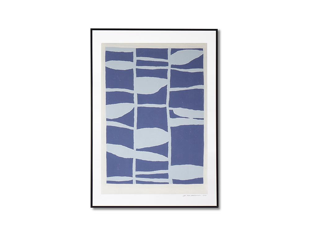 3色の青を使ったモダンで抽象的な印象の#2は素朴さとユニークさを兼ね備え、どこか北欧のテキスタイルデザインを彷彿とさせます。生活のモノ・コトの全てからインスパイアを受けて創作をするというライゼの「らしさ」が溢れる作品です。