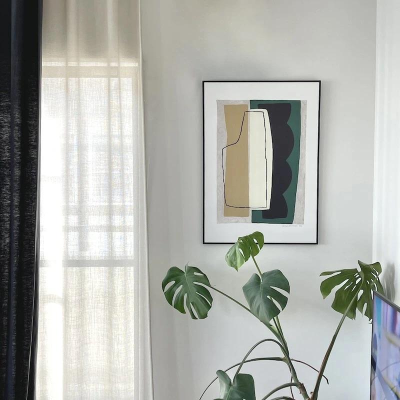 こちらの#5は淡いグリーン、イエロー、オフホワイト、グレーが有機的に組み合わさったナチュラルでどこか優しさを感じる作品です。お持ちの観葉植物などとコーディネートするとよりボタニカルな雰囲気を引き立てます。