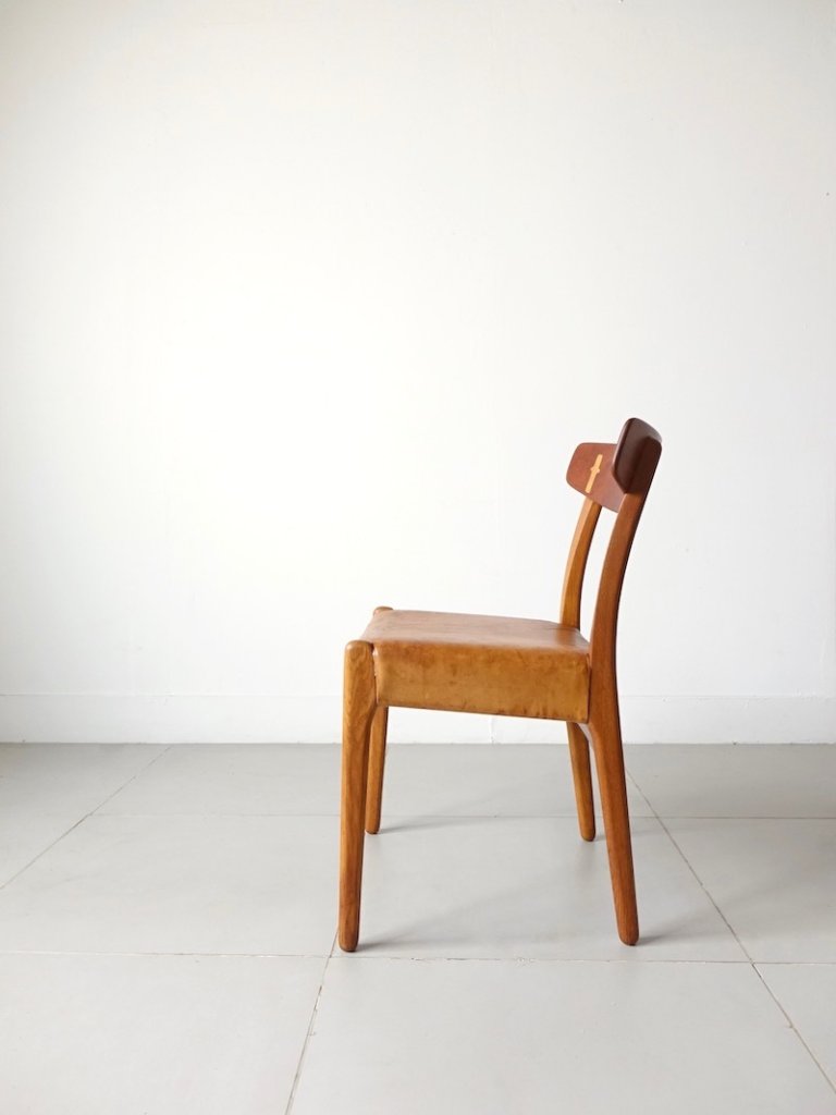 こちらの座面はヌメ革へのカスタマイズを前オーナーにて施されておりました。非常に味わい深い佇まいだった為、フレームメンテナンス後、内部素材を入れ替え、革は再利用致しました。経年変化をする自然素材だからこそ生まれた木と革の雰囲気をウェグナーの名作と共にお愉しみ頂けたらと思います。