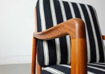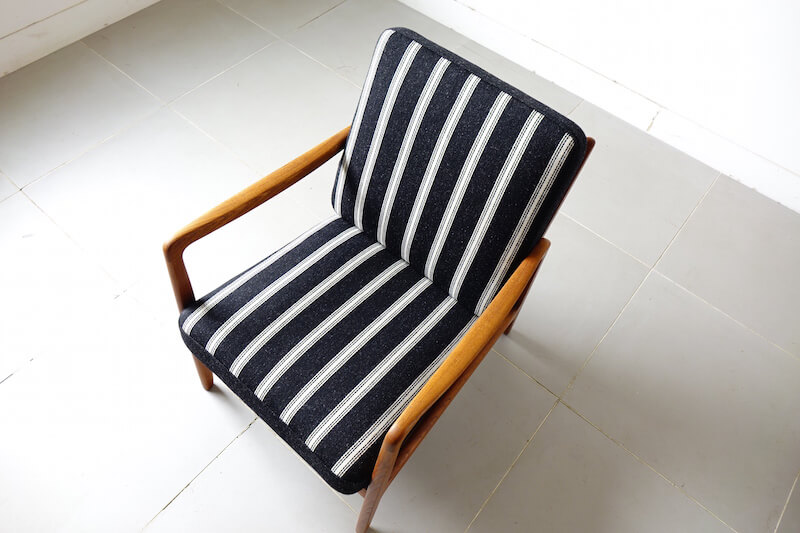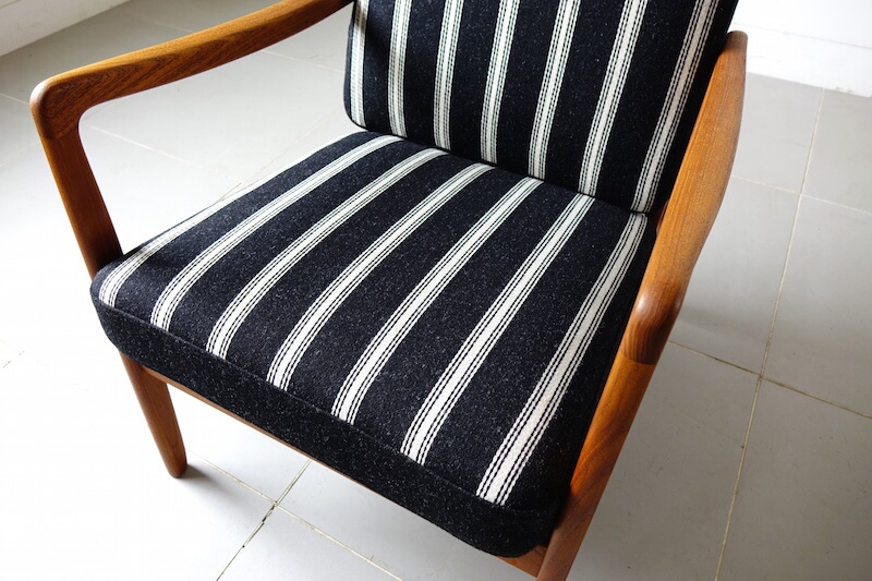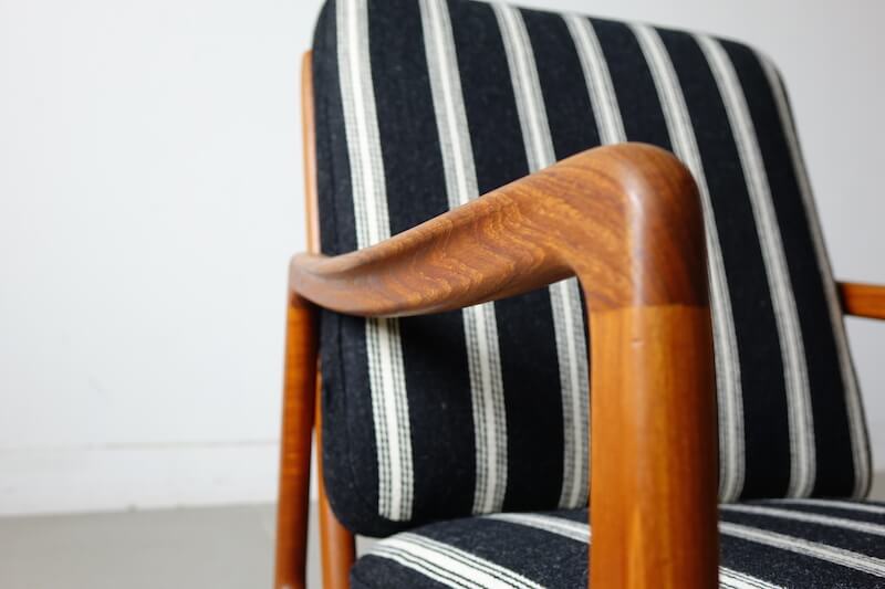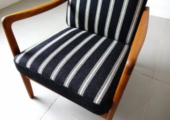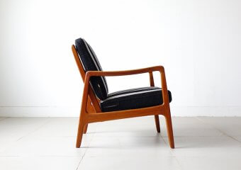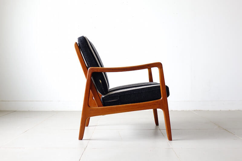 デンマーク王立芸術アカデミーの教授としてもデンマークデザイン界に多大影響を与えたOle Wanscher(オーレ・ヴァンシャー)によるデザイン。数多くのデザイナーの作品を手がけ、品質の高さに定評のある「France & Son」により発表をされた作品です。細くしなやかな肘掛けが特徴的で、チーク無垢材をふんだんに使用したフレームに肉厚のあるクッションの組み合わせは申し分のない座り心地と寛ぎを体感して頂けます。