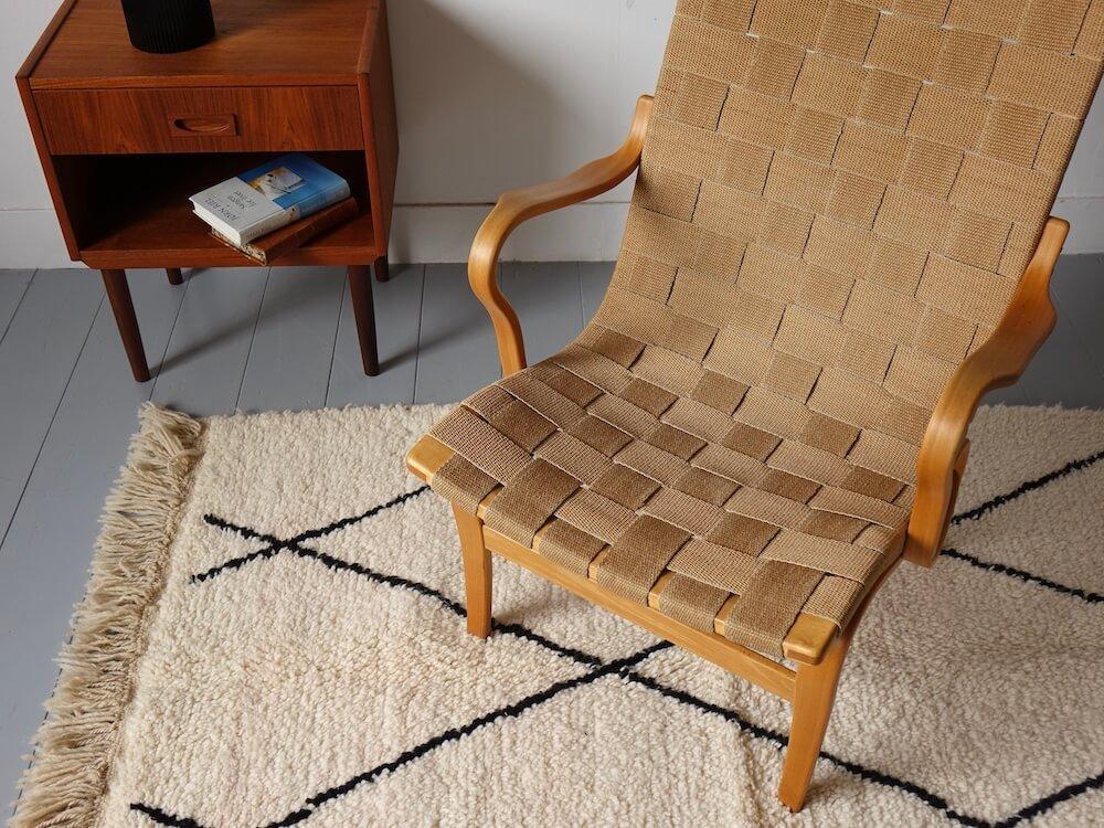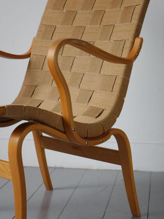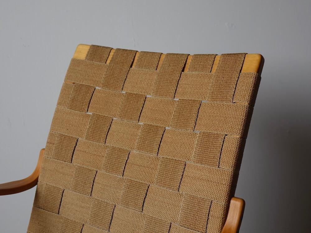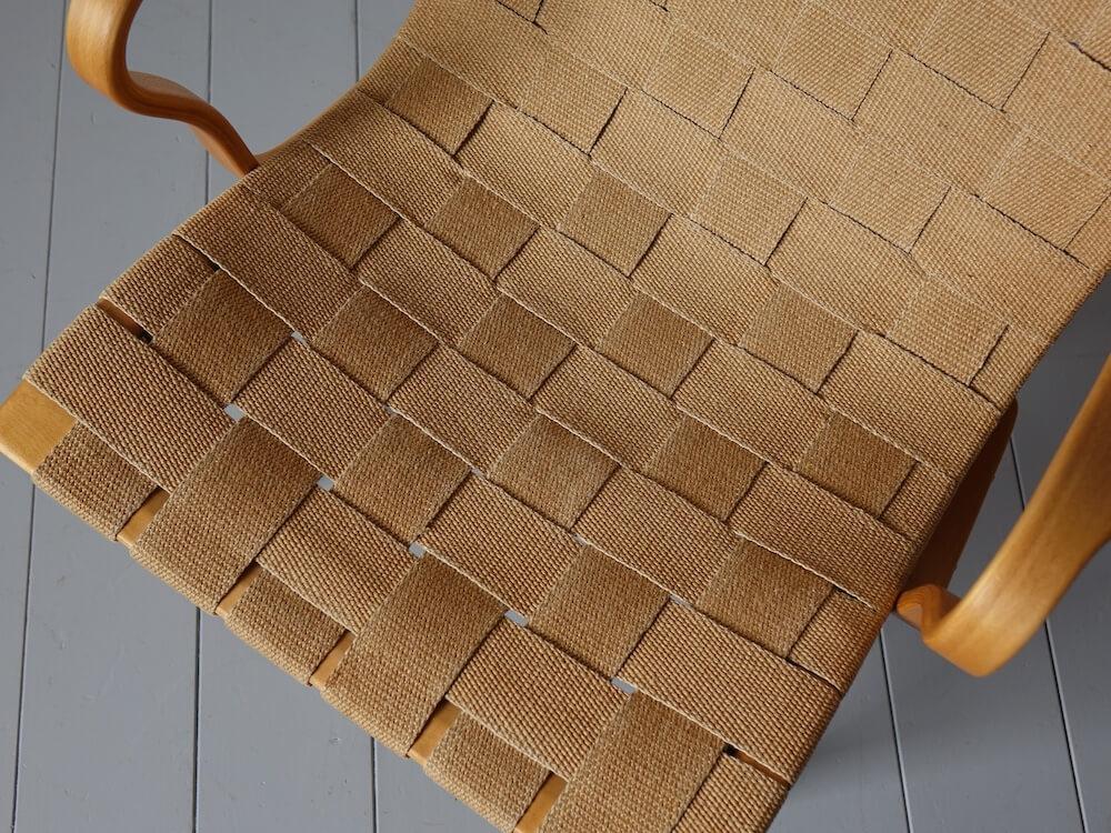 曲げ積層されたビーチ材による軽やかなフレームと、自然素材のウェービングベルトを組み合わせた構造は、身体のラインに沿うよう計算され、包み込まれるような座り心地を生み出します。機能主義に基づきながらも、どこか温かみを感じさせる佇まいは、Mathsson作品ならではの魅力です。