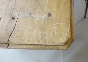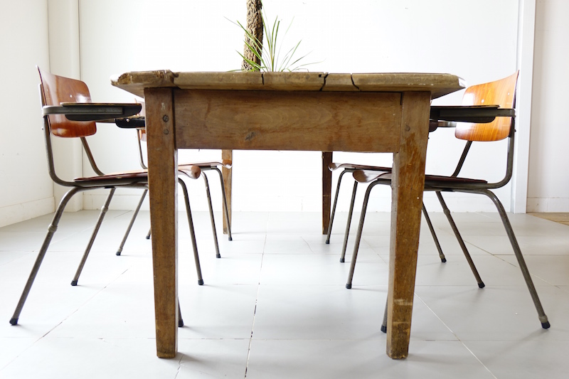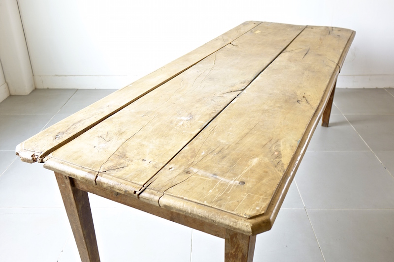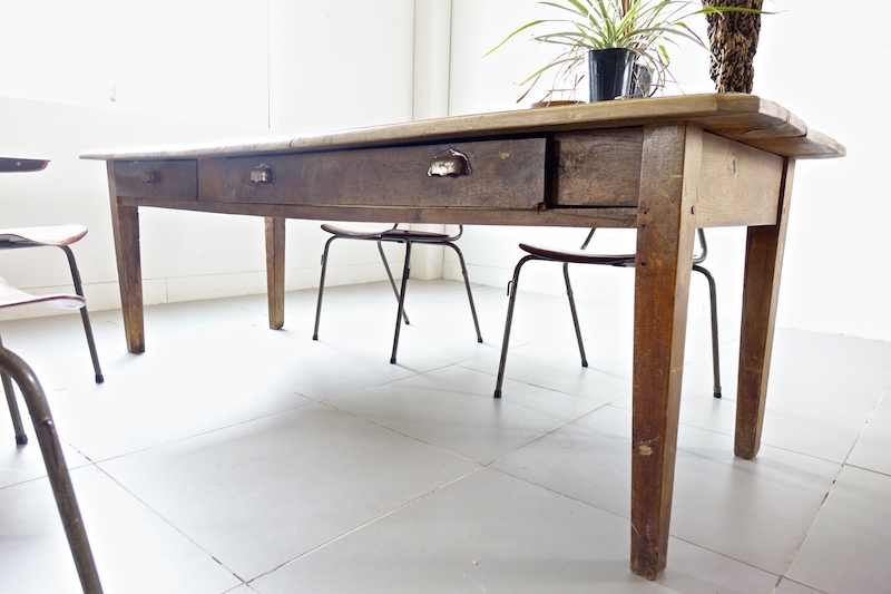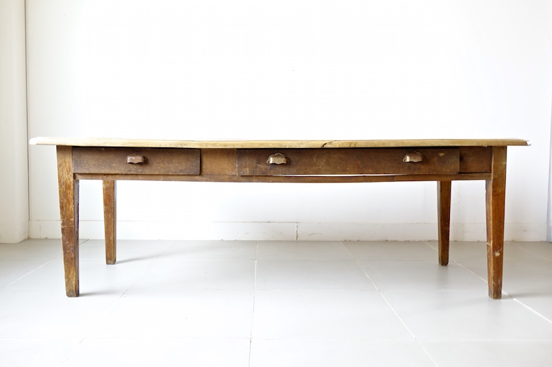 大型で木の使い込まれた表情がとても魅力的なアンティークファームテーブル。シンプルでモダン家具との相性も良く、ご自宅のダイニングテーブルとして、ショップディスプレイにも最適です。