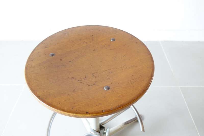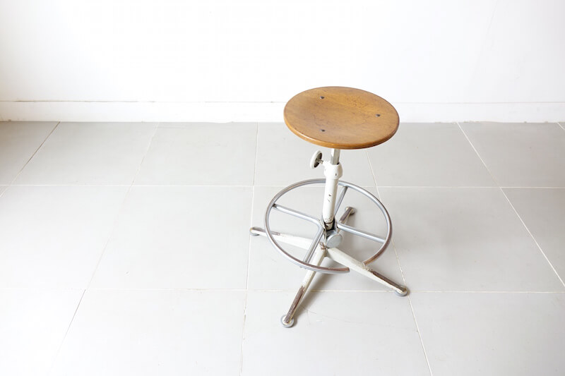 オランダインダストリアルデザインのアイコンと言えるデザイナーFriso Kramer(フリソ・クラマー)がデザインによりAhrend De Cirkel社より発表されたインダストリアルスツール。クラマーらしい脚に個性的な脚置き、良い雰囲気の作品です。