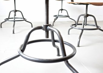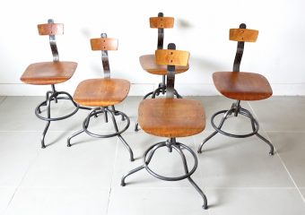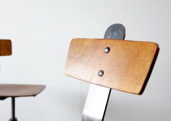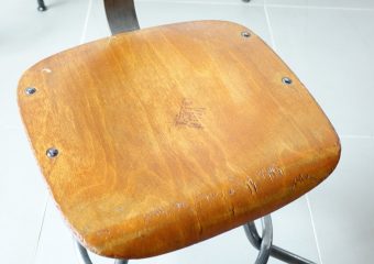 オランダ製ヴィンテージインダストリアルワークチェア、一見滑稽で座り心地を疑う背もたれだが、長時間座ると腰の曲がり易い場所を程よく支え、良い姿勢が保てる椅子です。座高も可動域が広く、お持ちのデスクやテーブルと高さ調節ができます。