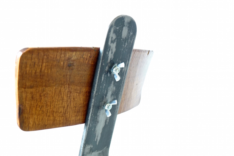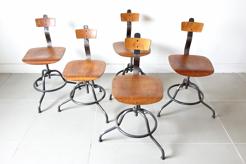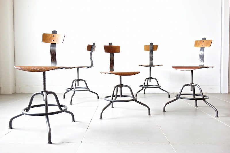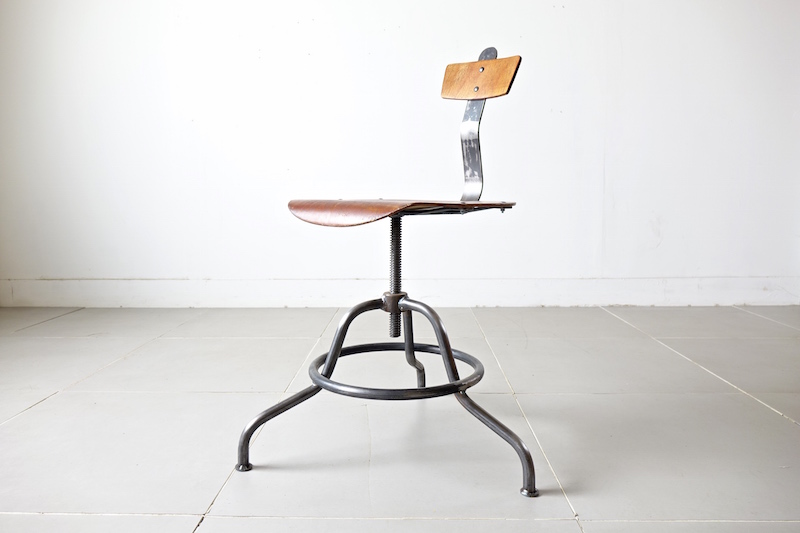 オランダ製ヴィンテージインダストリアルワークチェア、一見滑稽で座り心地を疑う背もたれだが、長時間座ると腰の曲がり易い場所を程よく支え、良い姿勢が保てる椅子です。座高も可動域が広く、お持ちのデスクやテーブルと高さ調節ができます。