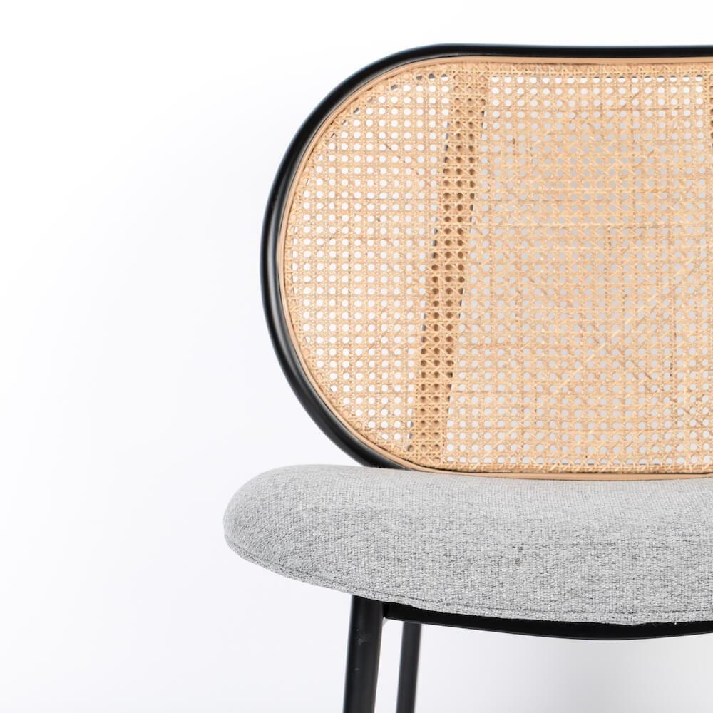 丸みを帯びたフォルムと柔らかな座り心地が魅力のラウンジチェア。軽快な藤張りの背もたれと耐久性の高いポリエステル生地を使用した座面は、中央に綺麗に湾曲し身体を包み込む様に支えてくれる安楽性を持ちます。モダンなデザインながらも主張し過ぎず、あらゆる空間にマッチする美しいアクセントチェアです。
