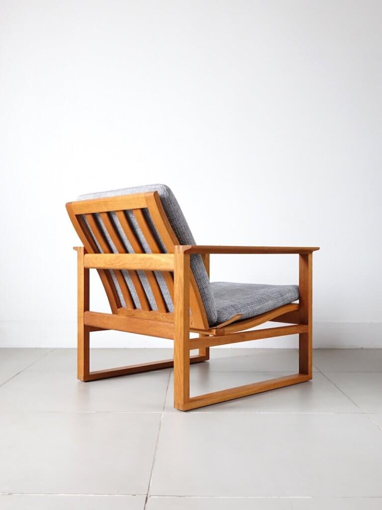 デンマークを代表する老舗家具メーカーのフレデリシア社より56年に発表された、Borge Mogensen(ボーエ・モーエンセン)デザインのヴィンテージイージーチェア”Model 2256”。 簡素でモダンな直線の中に置かれた、座り手の背中に沿うように描いた座面と背もたれの曲線がなんとも美しく、生活空間での家具の役割にこだわったモーエンセンらしく、時の経過を忘れてしまうほどの座り心地です。