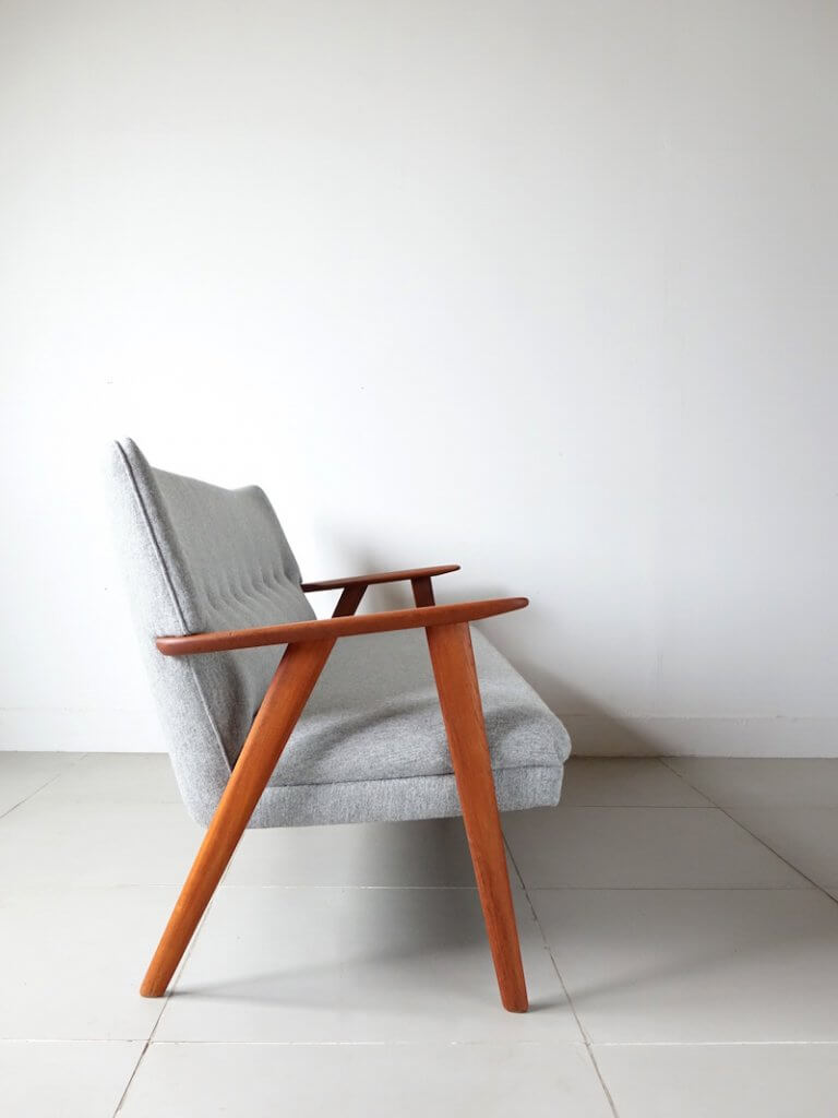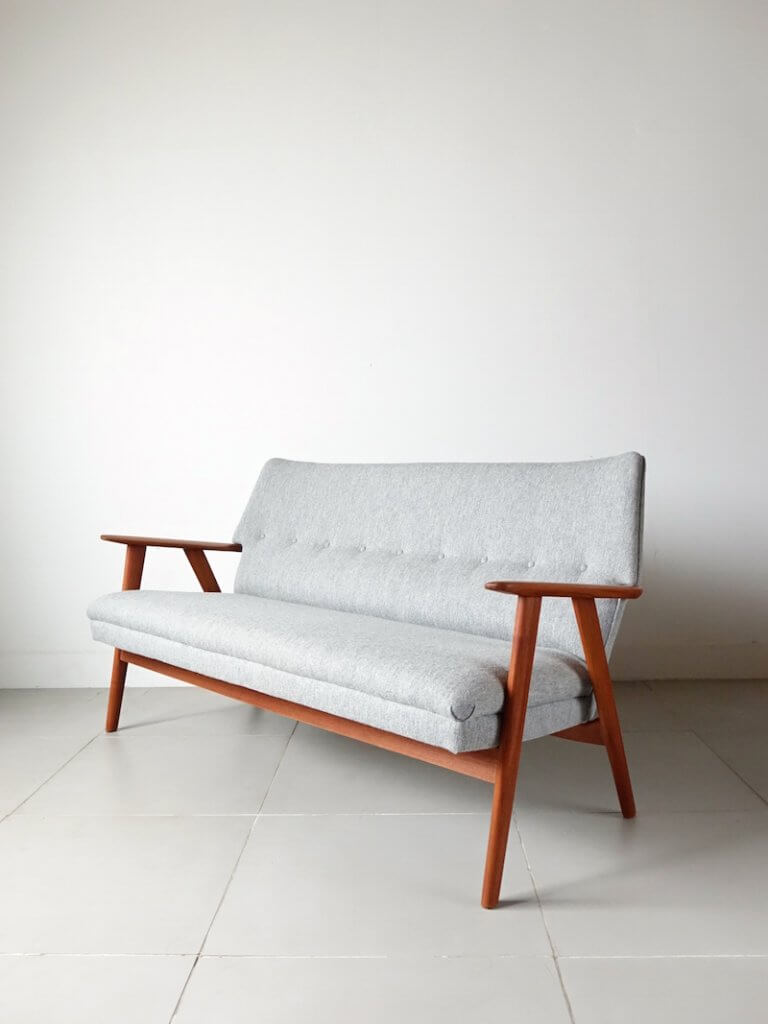 デンマーク人デザイナーKurt Olsen(カート・オルセン)によって、1950年代にSlagelse Mobelvarkより発表されたModel 230 ソファです。カート・オルセンは、デンマークデザインの黄金期と呼ばれる50年代~60時代に活躍したデザイナー。良い座り心地、使い勝手と共に、細身で美しい外観や細部のディテールに至るまで拘った作品を多く残しました。