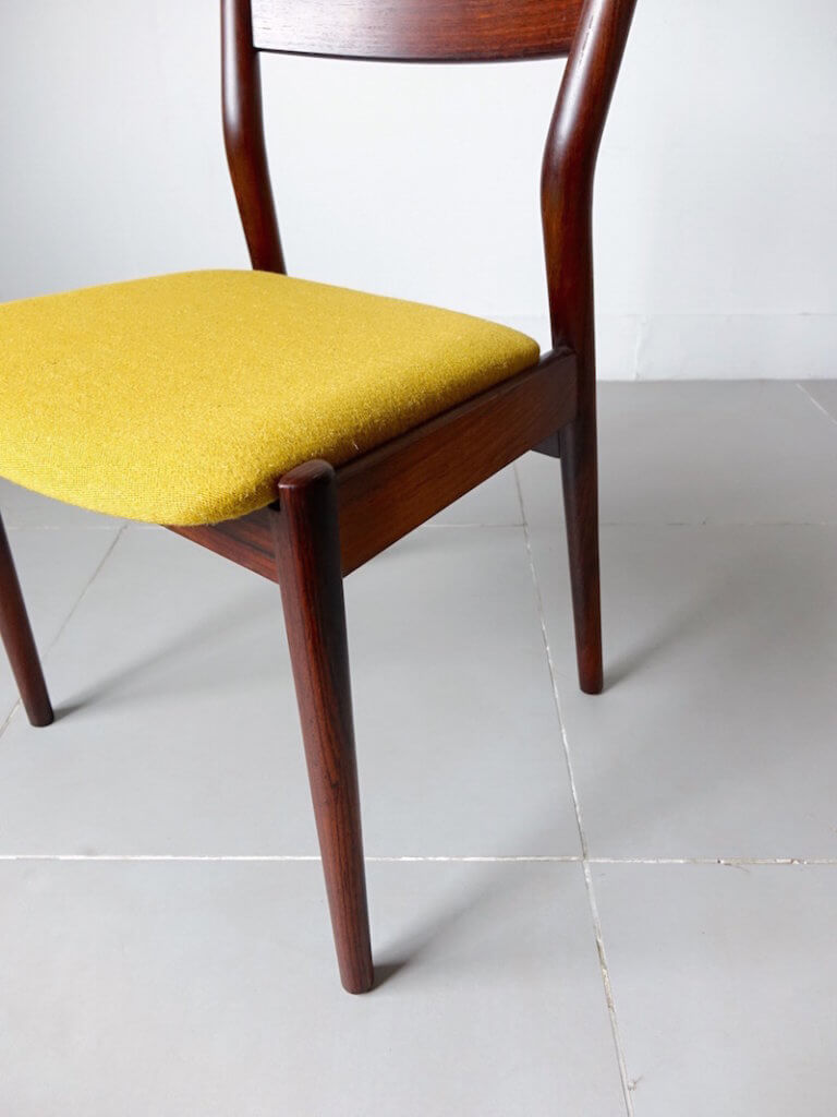 脚から背にかけての角度や背もたれの曲線など、稀少なローズウッドのHelge Sibastのクラフトマンシップと美意識の賜物です。