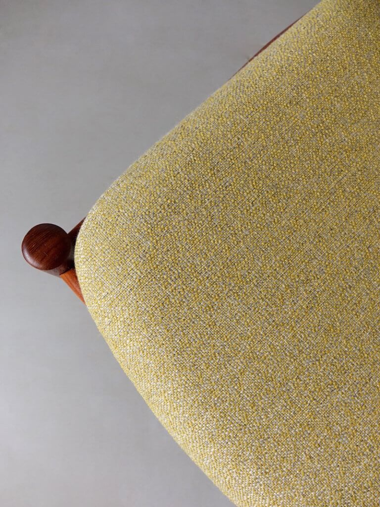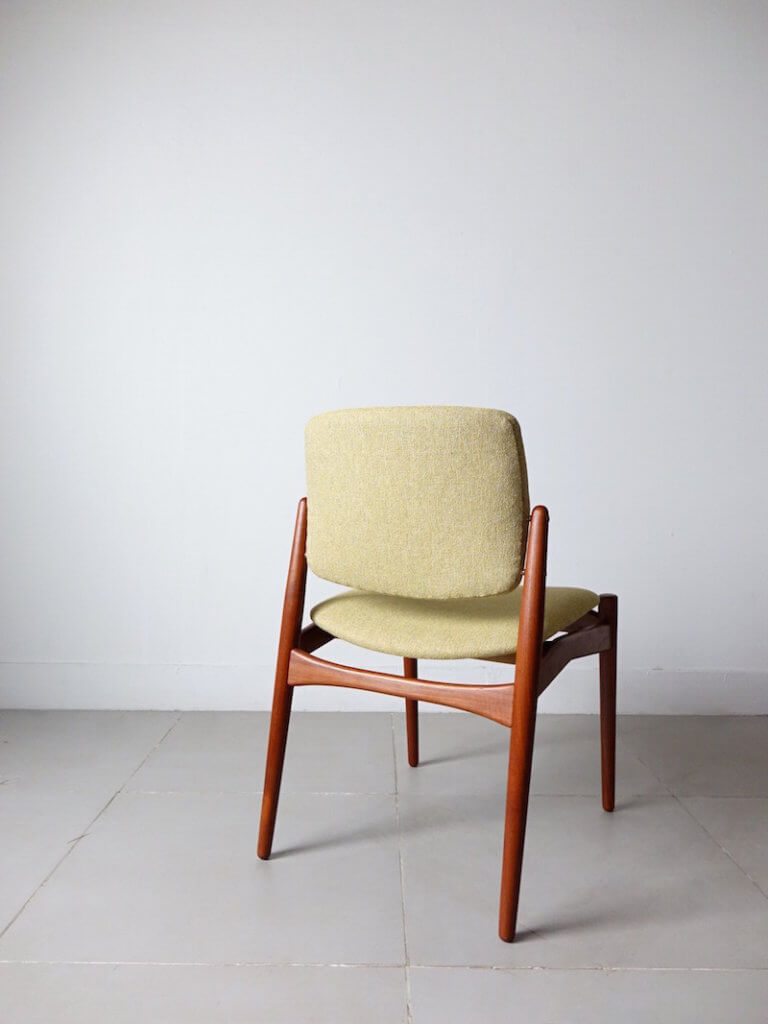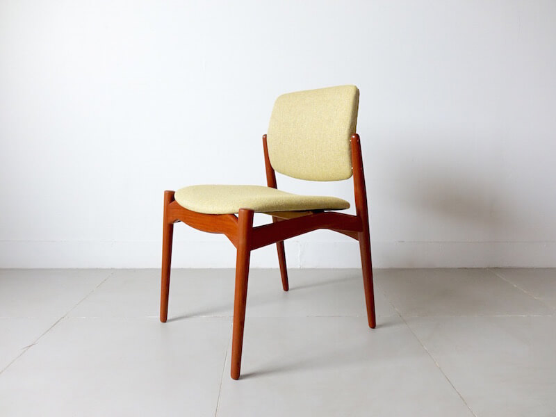 1960年代にデンマーク人デザイナーErik Buck(エリック・バック)のデザインでOrum社より発表された珍しいダイニングチェア”キャプテン”。上質な無垢の削り出しによるユニークで美しいフレームと、背もたれとフレームを繋ぐ真鍮金具、浮いたような座面のデザイン、この椅子にはアームチェアのラインナップも存在しどちらも長時間の読書やデスクワークも快適に過ごしていただけるバックらしい座り心地を持った椅子です。