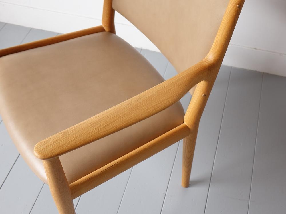 現在では廃盤となったものの隠れた名作としてヴィンテージ市場で長く受け継がれています。大きく広い背もたれと座面は、身体を広い範囲でサポートする為、安定した座り心地が得られ、無垢材を丁寧に削り出した木部フレームはどの部材も滑らかで、肘掛けの手触り感や収まりが非常に良い完成度の高いチェア。