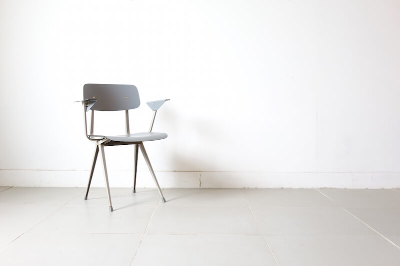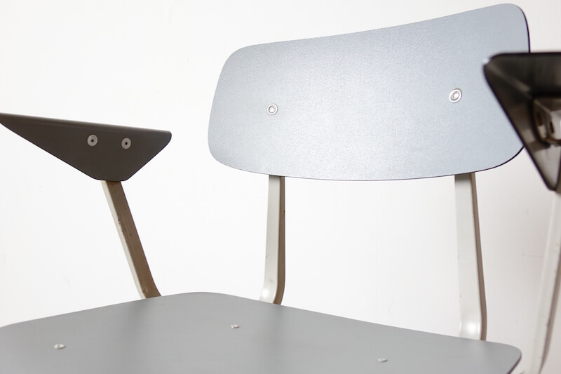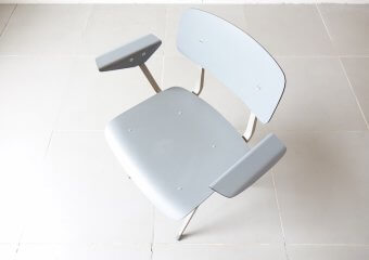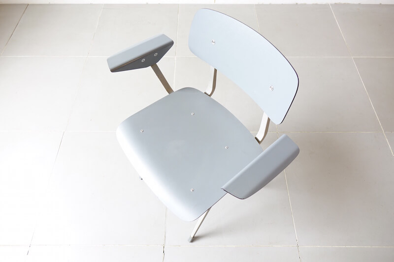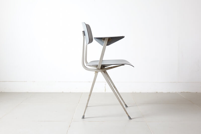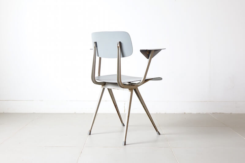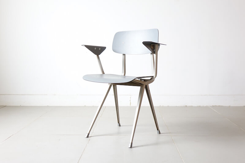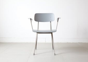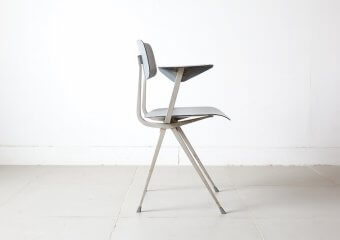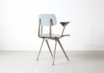 1950年代前半、オランダを代表するインダストリアルデザイナーFriso Kramer(フリソ・クラマー)がデザインした、Ahrend de Cirkel 社の名作リザルトアームチェアです。当時のモデルの特徴でもある、シラノールという柔軟で強度が高い素材で背、座、肘掛けを構成し、独特な曲線を持つスチールフレームがとても美しい佇まいを持ちます。